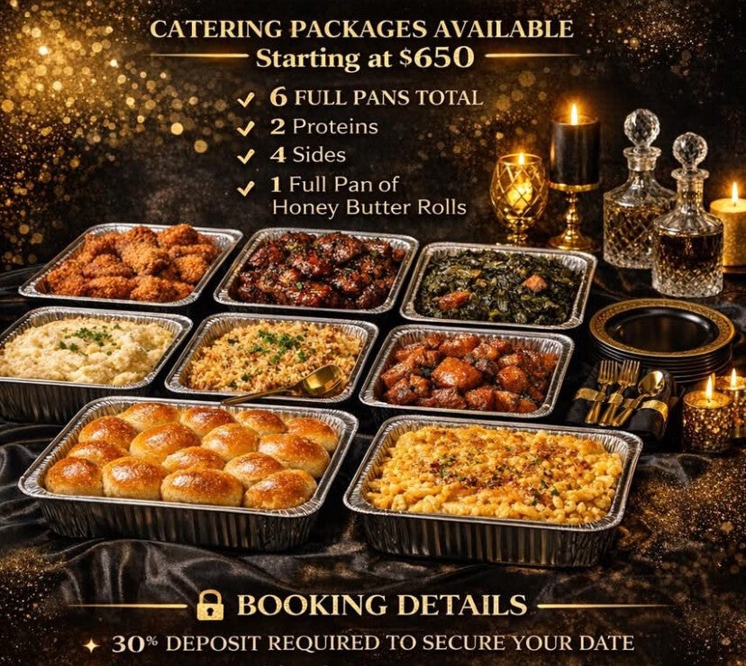 | 6 Menu Pans 2 protein 4 sides & rolls | $600.00 |